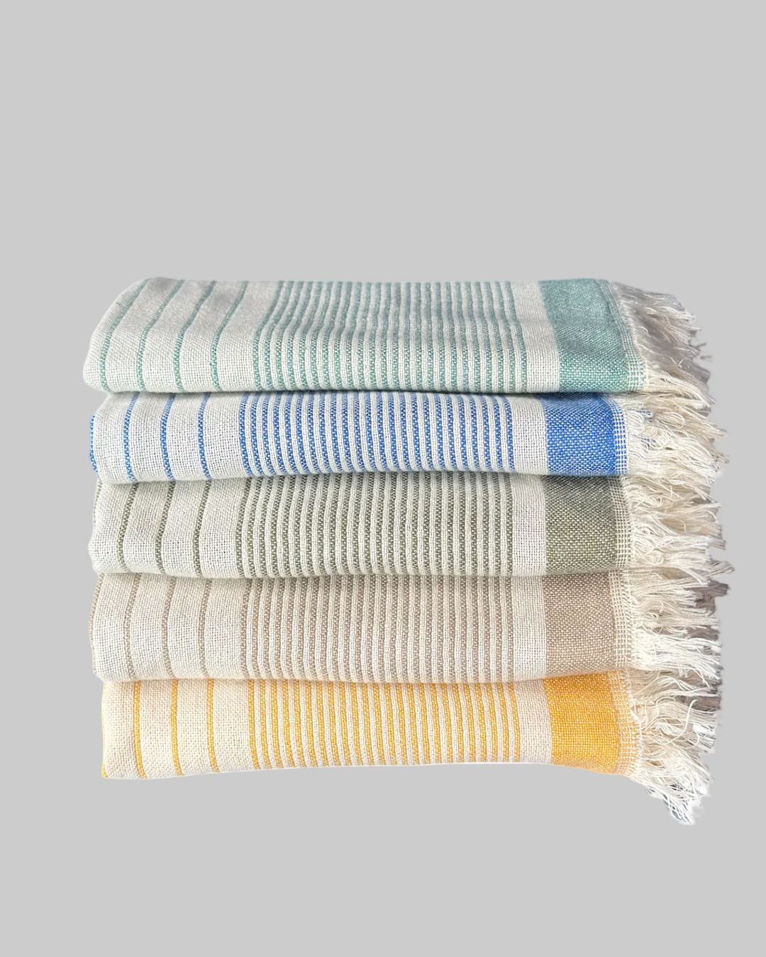 Featuring fun stripes with soft colors, the Nova Collection towels are extra soft and lightweight. Crafted of high quality Turkish cotton, these Turkish towels are great as a dish towel in the kitchen or a hand towel in the bathroom. You can even use it as a napkin, runner or placemat for a casual table setting.