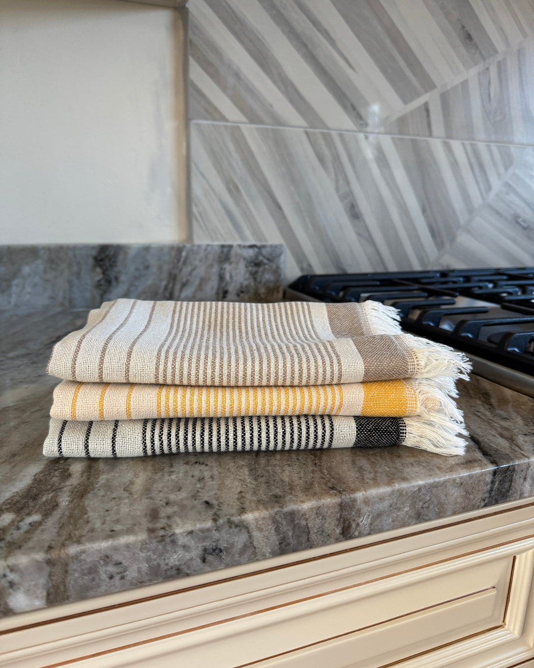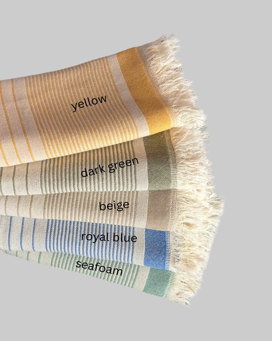 Featuring fun stripes with soft colors, the Nova Collection towels are extra soft and lightweight. Crafted of high quality Turkish cotton, these Turkish towels are great as a dish towel in the kitchen or a hand towel in the bathroom. You can even use it as a napkin, runner or placemat for a casual table setting.