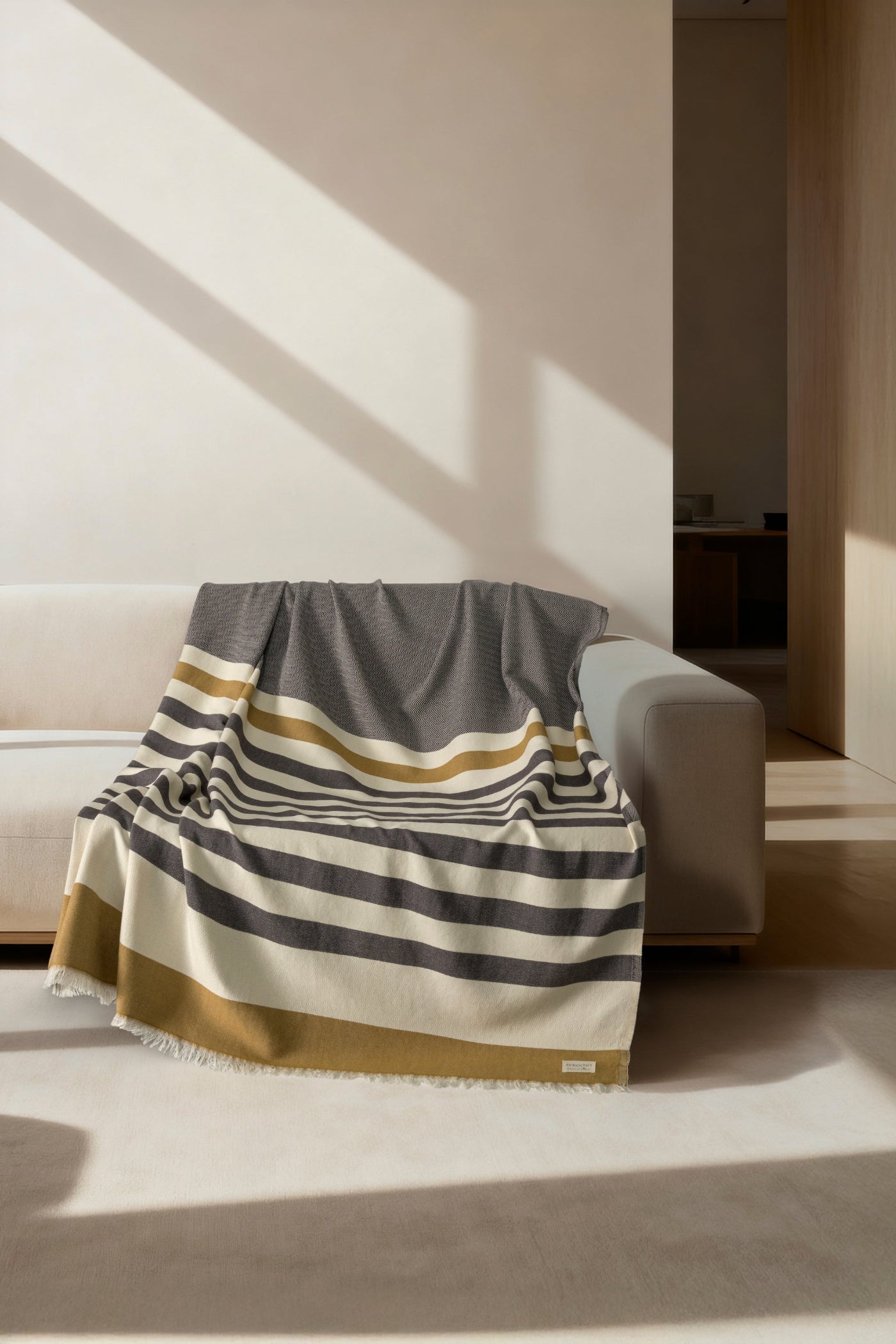 Our new Risha throw features stripes followed with herringbone weave. The elegant look is complete with contrasting accent color.